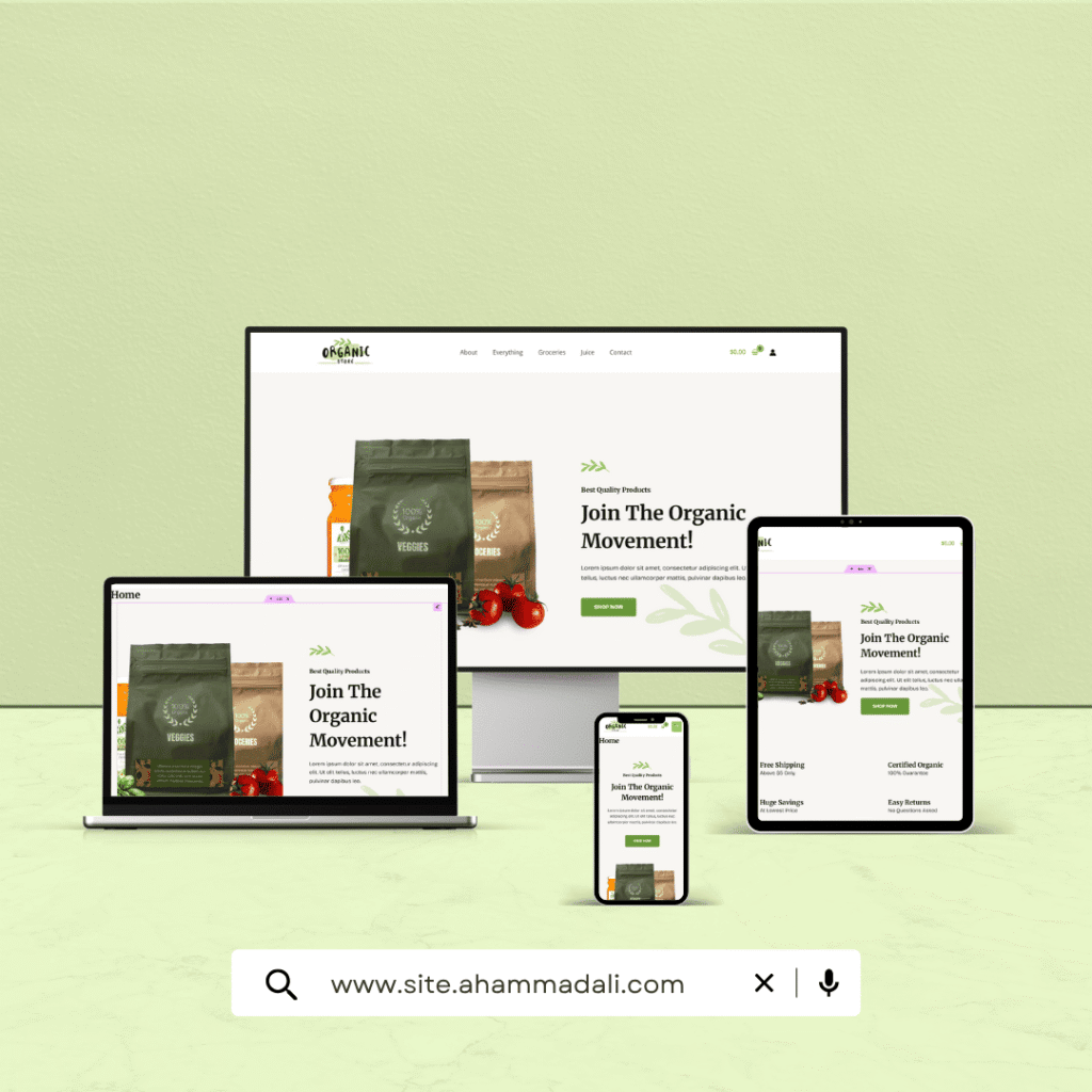 A clean and green-themed online store built for organic products. Designed with Elementor and WooCommerce to highlight healthy, eco-friendly items with a modern, user-friendly layout.